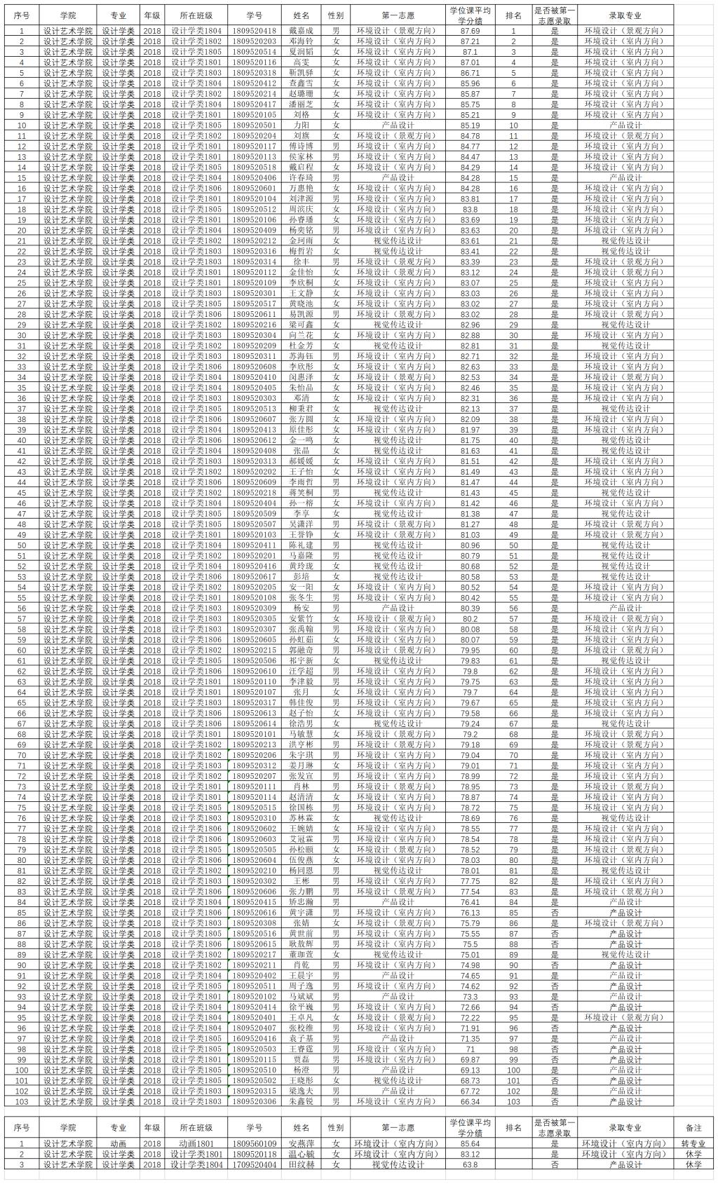 公示:艺术-2018级专业分流